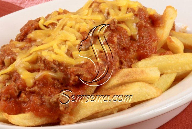 بطاطس مقلية مع صلصة اللحم طبق سريع وخفيف، خاصة عند العودة متأخرة من العمل، يتكون من لحم البقر المفروم ناعم المحمص مع البصل، الثوم، الفليفلة، والتوابل، ثم يخبز بالفرن بطبق خزفي مع البطاطا المقلية والجبنة، يمكن تقديمه مع طبق من سلطة الخضار.