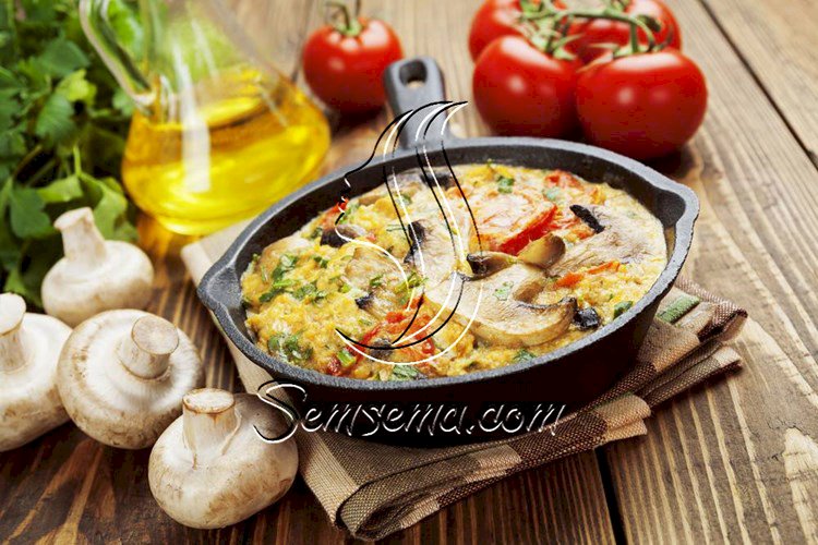 - ضعي البيض في المقلاة ثم ضعي الزيتون والمشروم والهوت دوج.