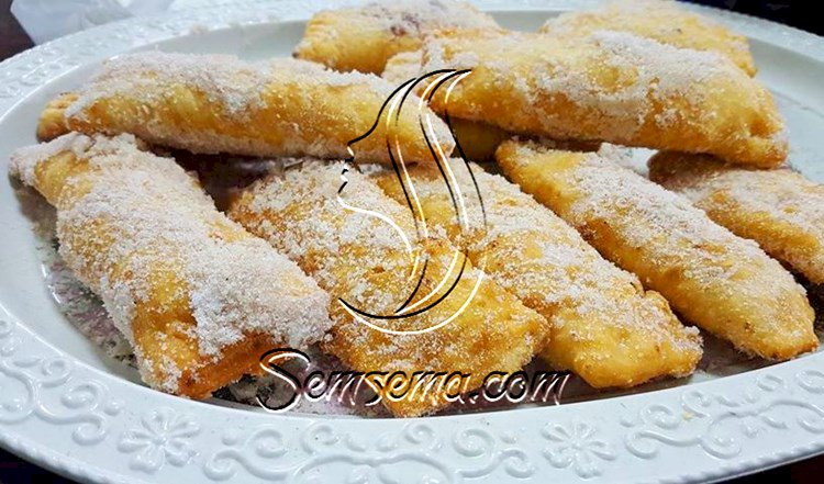نرش طحين على سطح مستوٍ ونفرد العجينة عليه ونقطعها مستطيلات أو حسب الذوق ونوزع عليها الحشوة ونغلقها بإحكام من جميع الأطراف .